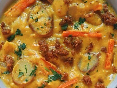 VEGAN SAUSAGE AND BUTTERNUT SQUASH SOUP