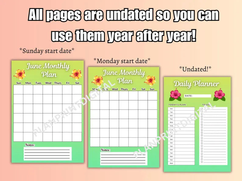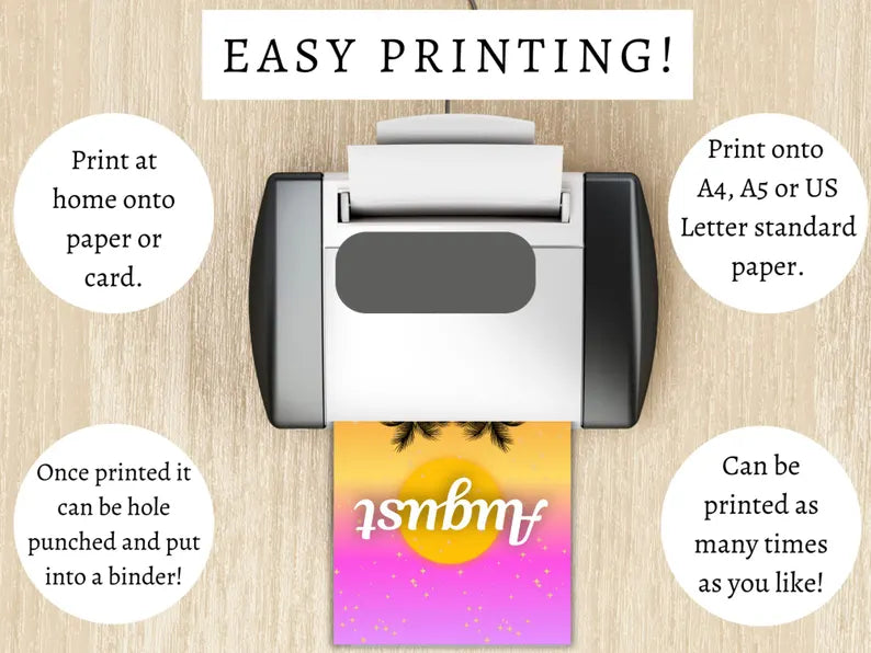 Every single page comes in 3 sizes. A5, A4 and US Letter size, so you can choose whichever is best for you. This bullet journal was designed with you in mind to help organise your life and make things easier in a productive and pretty way!